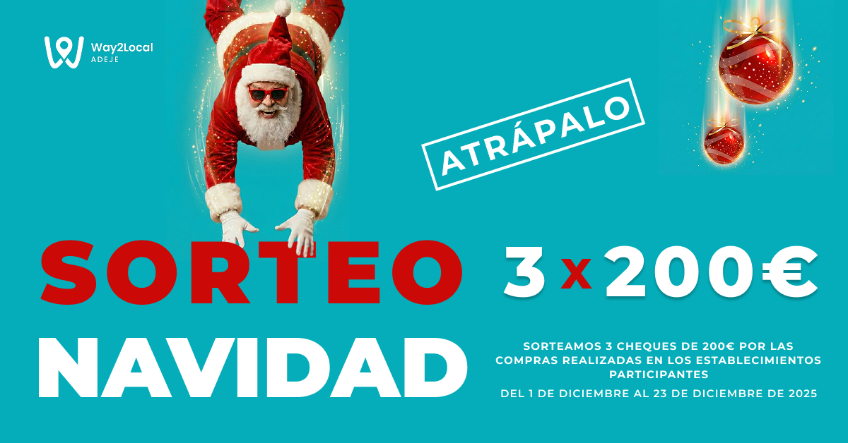 Realiza tus compras en los establecimientos adheridos a Adeje Way2Local y participa automáticamente en el sorteo de 3 cheques regalo de 200 € cada uno, para utilizarlos en los comercios participantes.